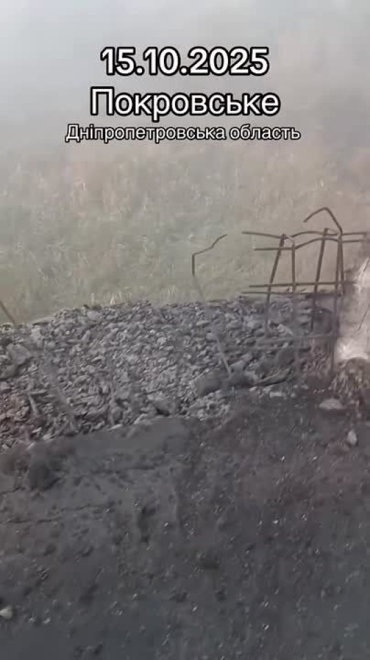 Последствия удара по мосту через реку Волчья в Покровском (Днепропетровское направление). Удары по моста в ближнем тылу противника в последние недели активизировались - идет работа по разрушению логистики противника.