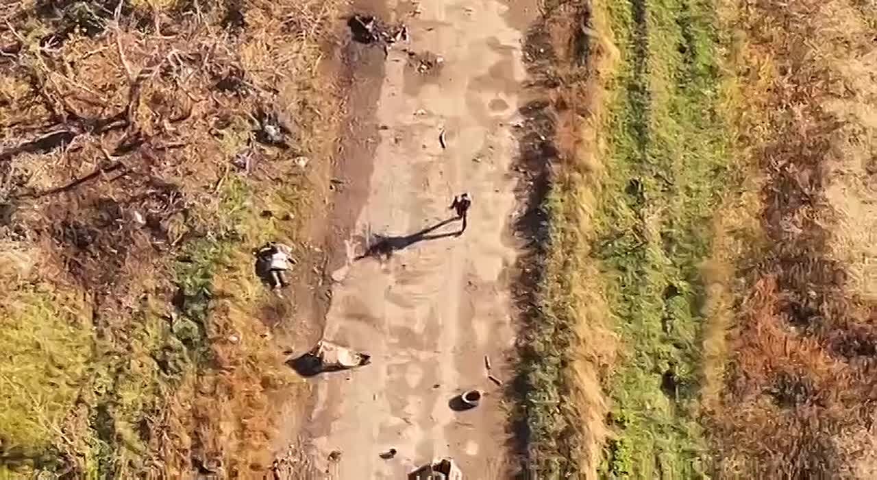 Это видео снято близ Красноармейска. Наша разведка выводила группу мирных жителей, обычных людей – двух женщин и четверых мужчин. Их вёл наш коптер. Людей, пару собак и кошку, которая убежала в момент, когда боевики убили её хозяйку. Атаковали дроном. Женщину, которая многим отважнее, чем те скоты, которые навели на неё беспилотник. На кадрах хорошо видно, что все идущие люди с белыми флагами – мирные. Но озверевший противник продолжил бить. Из этой группы, что пытались спасти наши бойцы из 51-й армии, выжили только четверо. Сейчас они в безопасности. Но на этой дороге жизни и одновременно смерти , оператор украинского дрона убил ещё одно человека. Мужчину шедшего впереди группы. Посмотрите на эти кадры. Если сможете. Это видео, где нелюди убили людей, как ещё одно тяжёлое напоминание – с кем мы воюем и насколько важно скорее освобождать русские города от неонацистской нечисти.