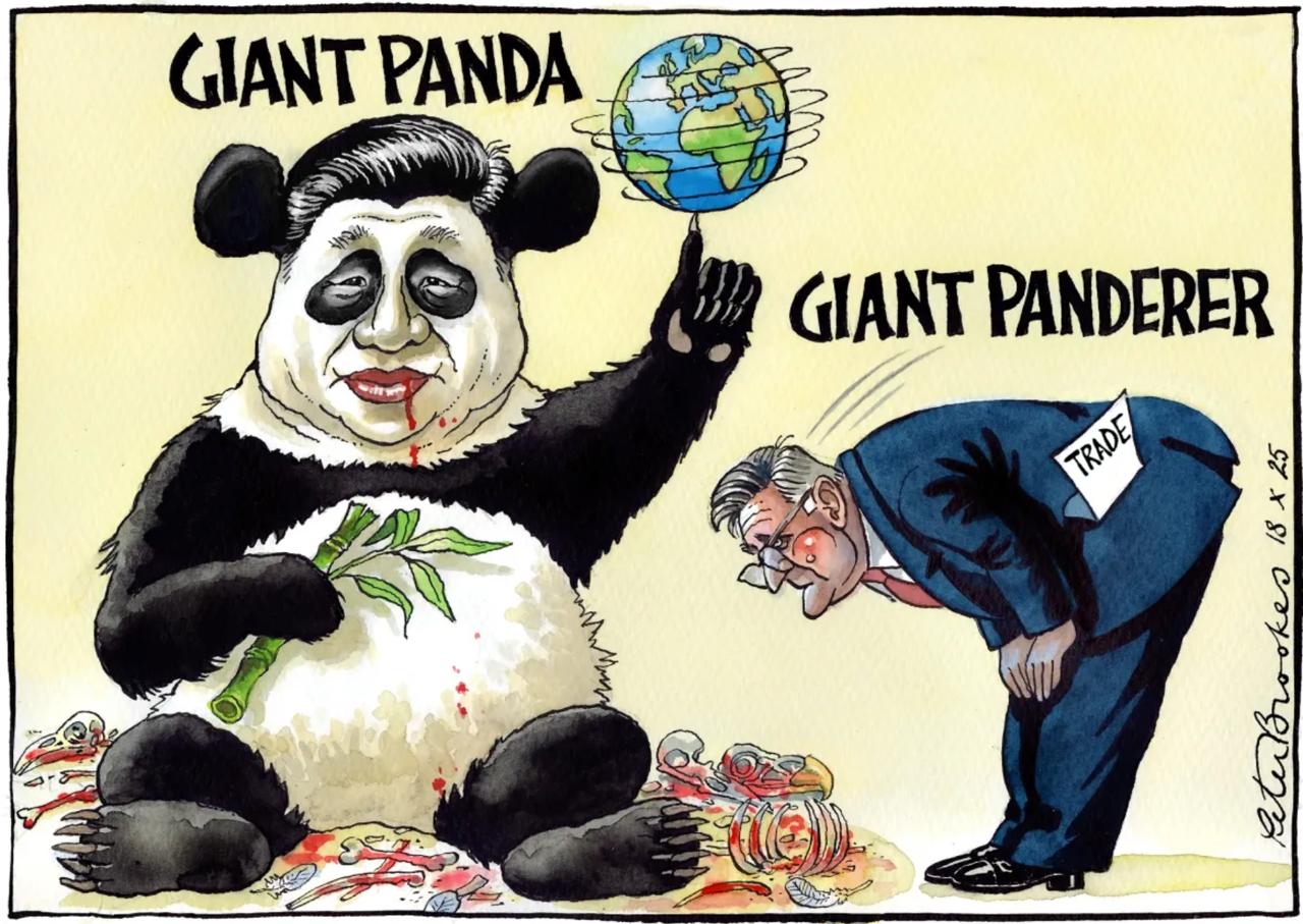 The Times рисует Си в виде гигантской панды, а Стармера - в виде гигантского угодника. А что делать, если на острове одни политические карлики остались!