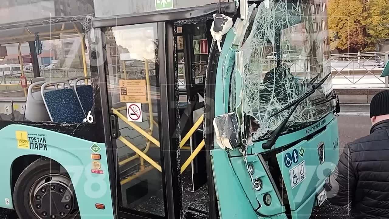 На месте находятся кареты скорой помощи. В салоне автобуса — капли крови, вероятно, из-за разбитого носа. Состояние водителей и пассажиров уточняется.