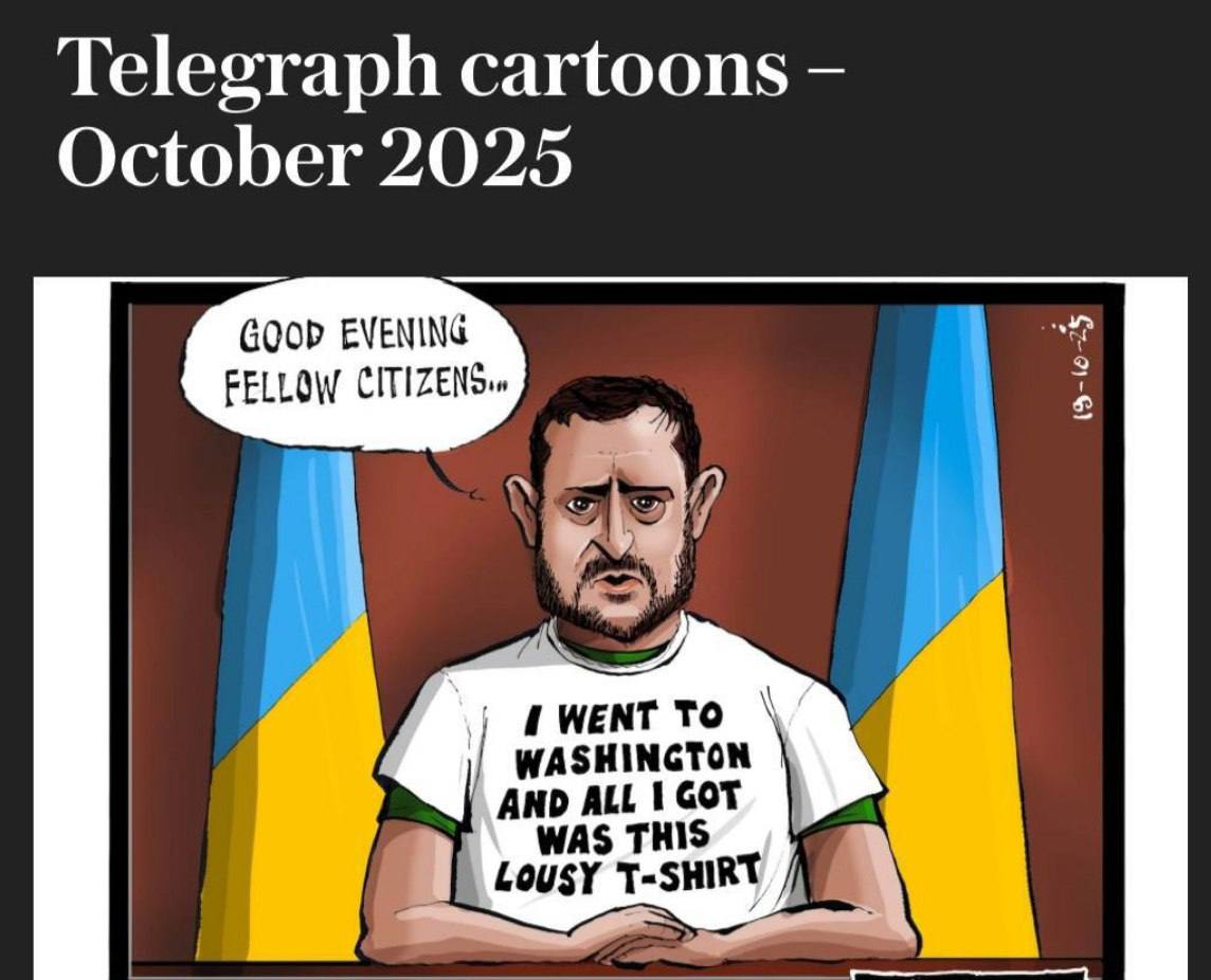Британская The Telegraph опубликовала карикатуру с лидером укронацистов в белой футболке, на которой написано: