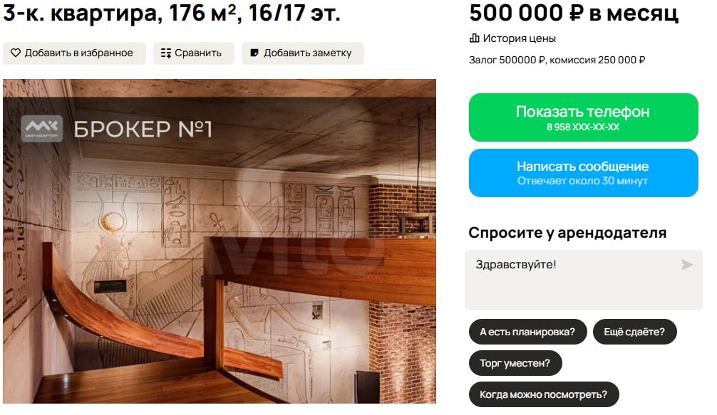 Согласились бы вы снять квартиру за 500 тысяч рублей в месяц? А если это трёшка площадью 176 квадратов? А если она обставлена как покои Клеопатры?