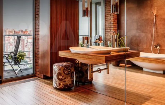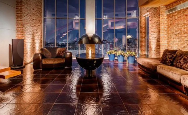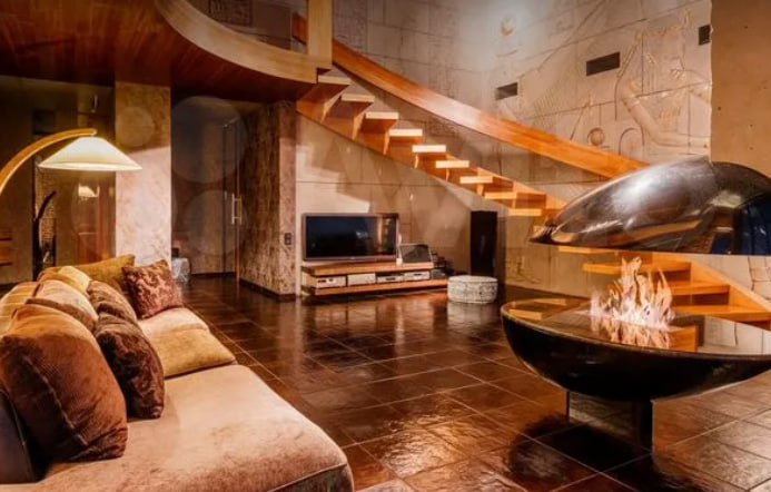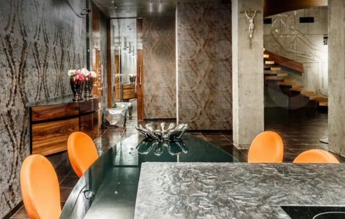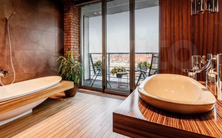 Как говорится в объявлении на профильном сайте, в квартире есть всё для роскошной жизни. Двухуровневая планировка, панорамные окна, ванная с выходом на балкон. Конечно, исключительно натуральные материалы отделки — за 500-то тысяч ежемесячного платежа.