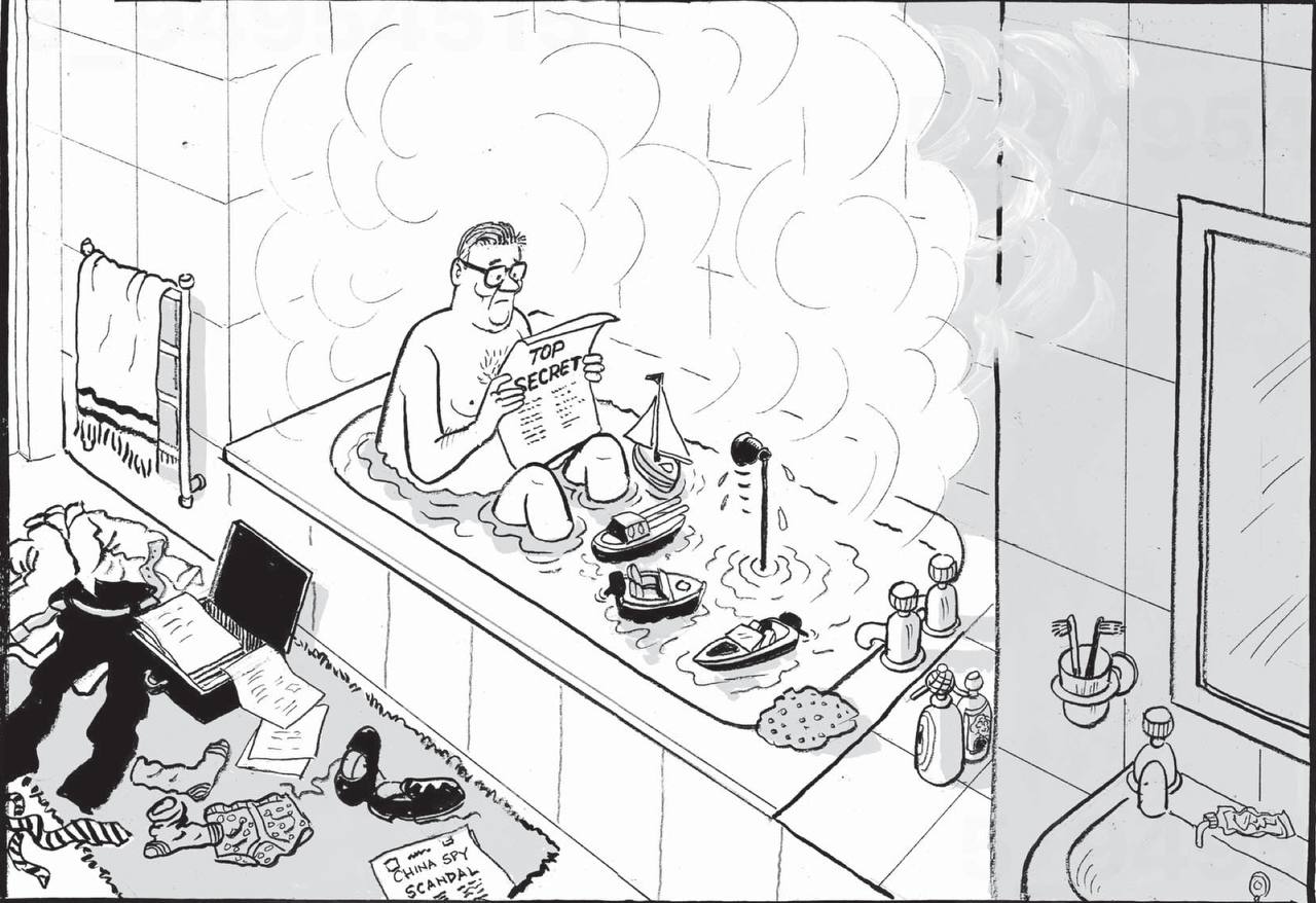 Газета Mail on Sunday подозревает, каким способом китайцы шпионят за Стармером - вон перископ в ванной поднимается. Правда, что ценного можно выудить у этого политического карлика? Подозреваю, что британские спецслужбы особо не доверяют секретную информацию этим быстро меняющимся премьерам и их командам