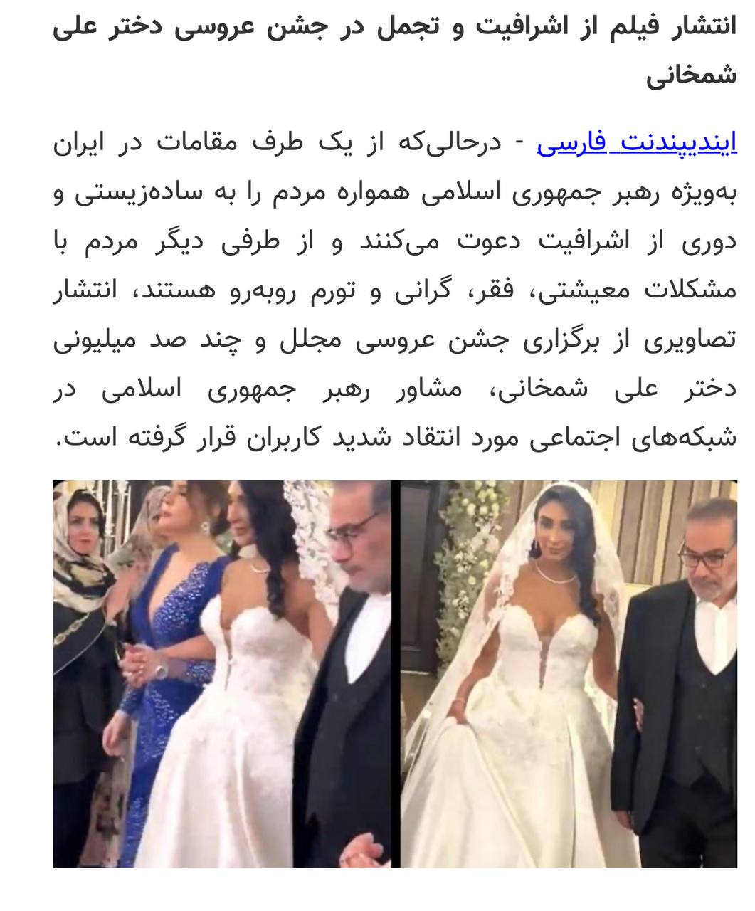 Оппозиционные иранские ресурсы, а также ряд израильских и азербайджанских СМИ усиленно разгоняют утекшие в сеть кадры со свадьбы дочери Али Шамхани — экс-секретаря Высшего совета национальной безопасности Ирана и советника верховного лидера.