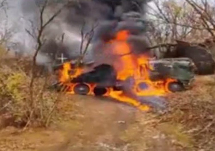 В Харьковской области непосредственно на огневой позиции ударами оптоволоконных FPV-дронов "КВН" уничтожена 155-мм колесная САУ 2С22 «Богдана» ВСУ на шасси Tatra T815-7 .