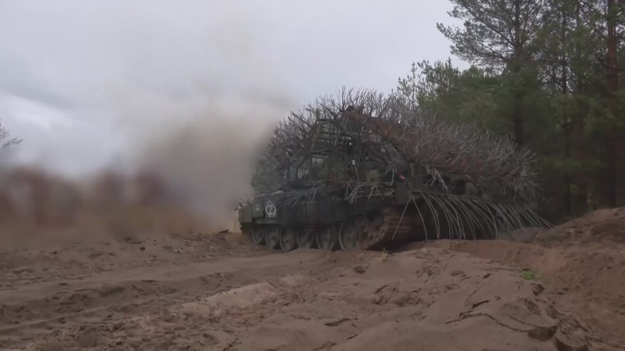 Боевая работа экипажа танка Т-72Б3 с системой защиты «Дикобраз», из состава 20-й гвардейской общевойсковой армии группировки войск «Запад» в ЛНР.