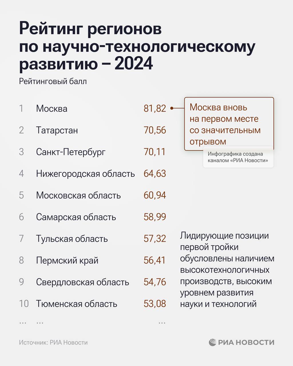В топ-3 – Москва, Татарстан и Санкт-Петербург.