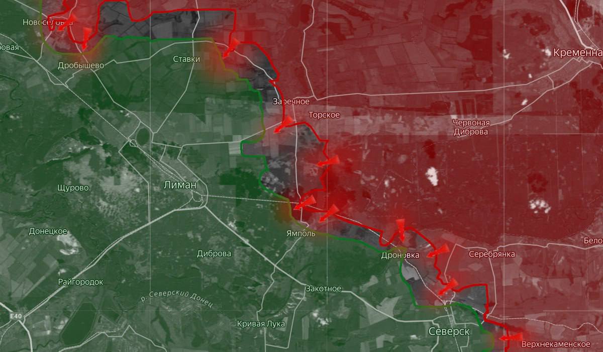 Продвижение ВС РФ фиксируется западнее Мирного и Заречного, а также в лесу между Заречным и Ямполем.