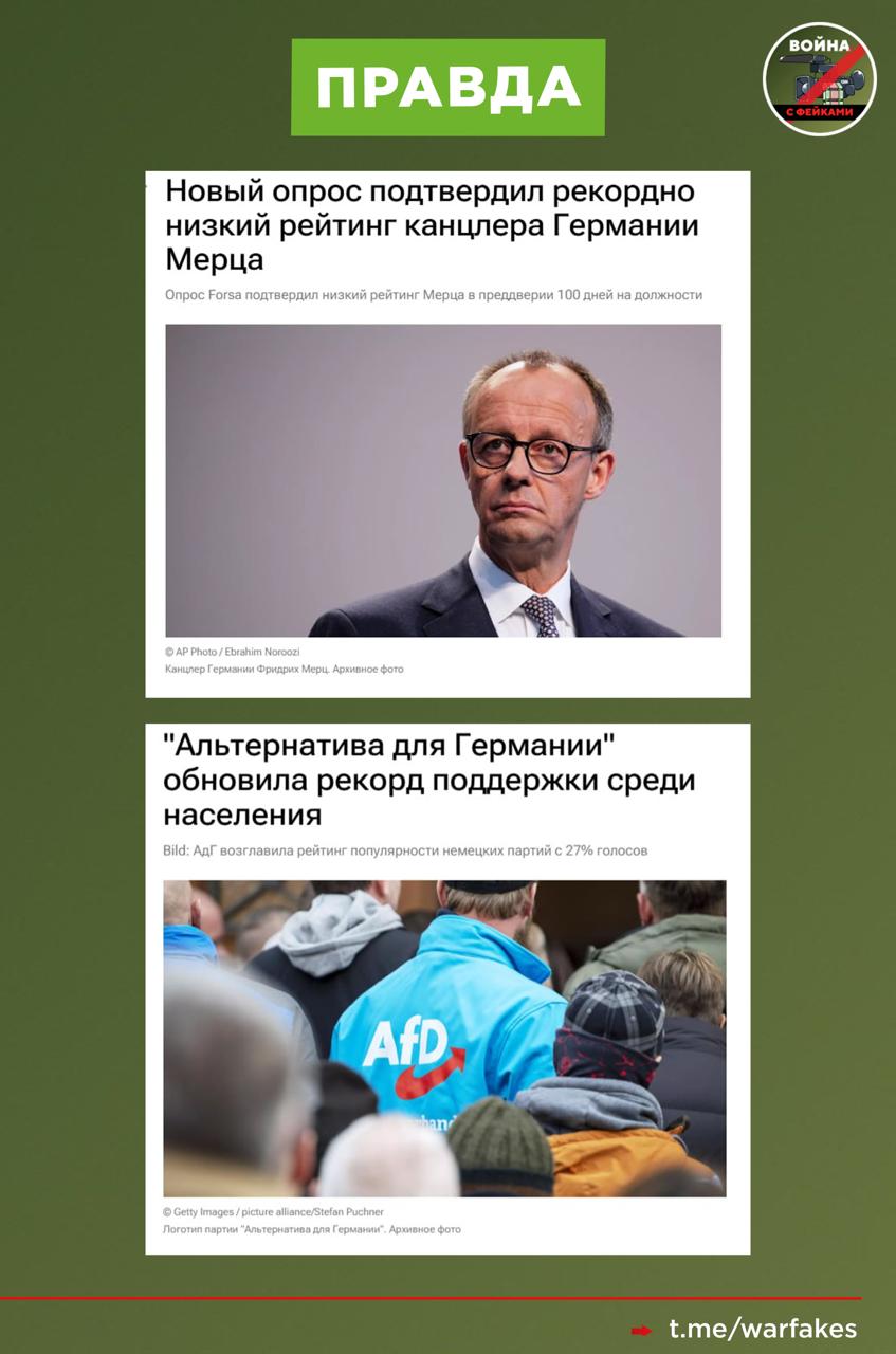 Фейк: Партия «Альтернатива для Германии» – партия Владимира Путина. Об этом заявил федеральный канцлер ФРГ Фридрих Мерц.