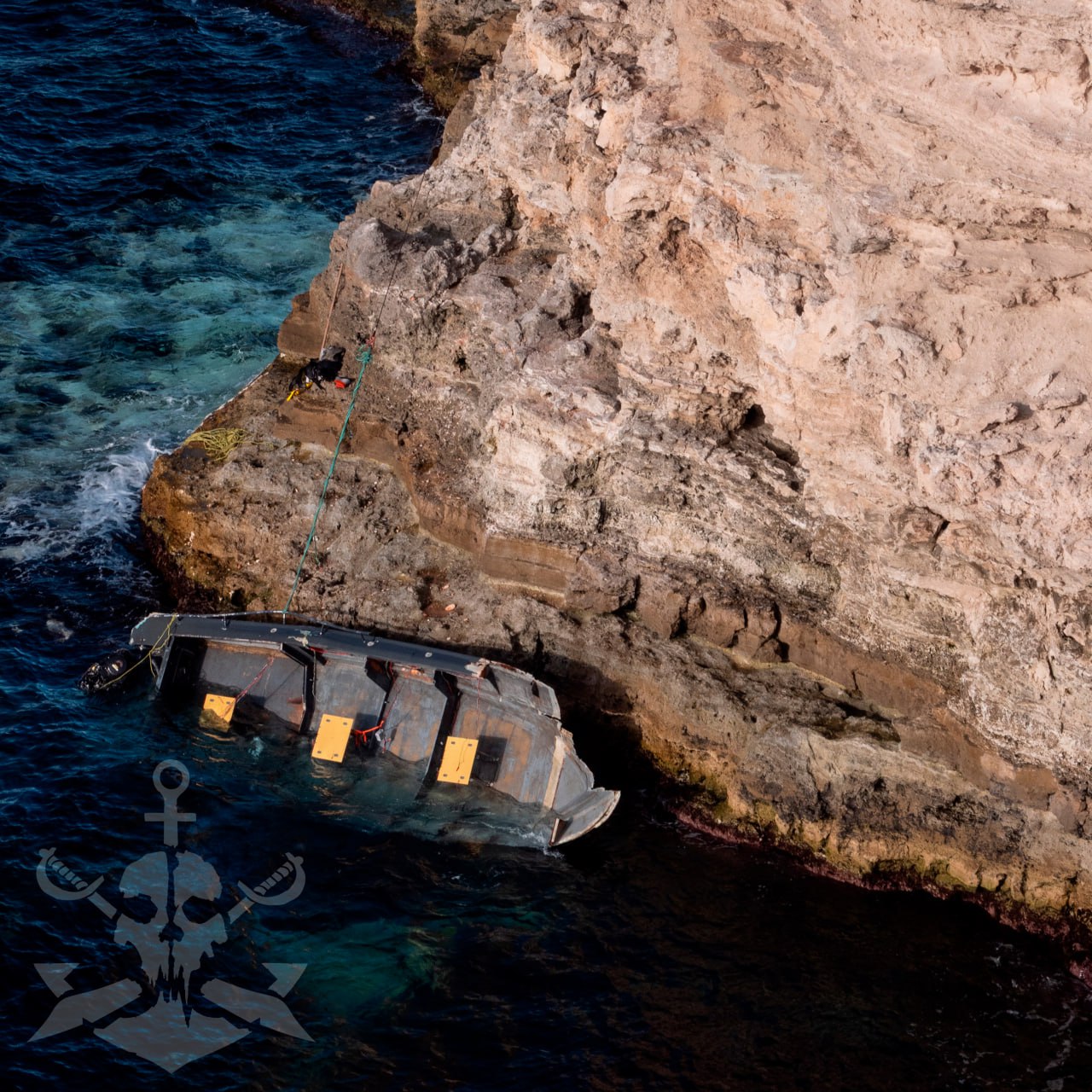 На крымских берегах морской отряд специального назначения исследует МБЭК противника, прибившийся к полуострову после потери связи. На данный момент производится первичный осмотр судна водолазной группой отряда. Уже на этом этапе найдено множество уцелевшего оборудования и ценных материалов, которые пойдут на благо России.