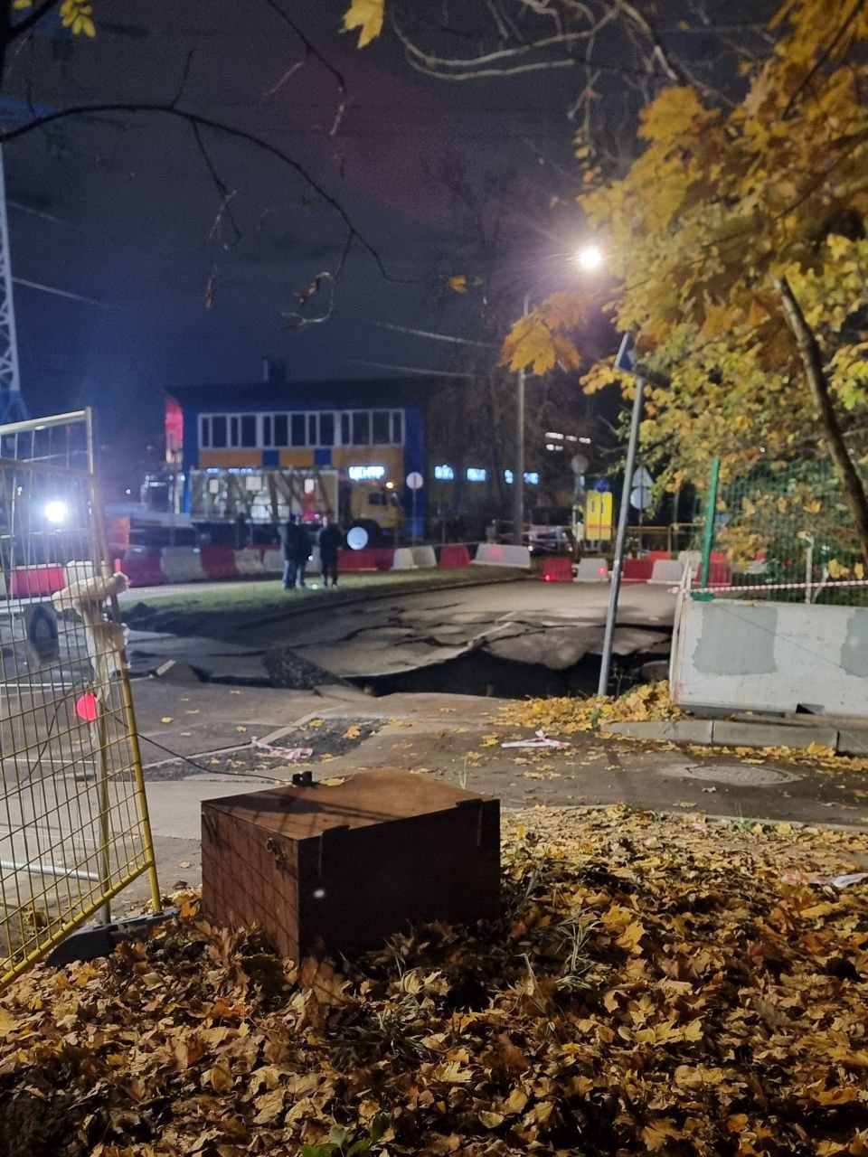 Провал глубиной 3 метра и площадью 90 "квадратов" образовался из-за прорыва подземного коллектора. По предварительным данным, обошлось без жертв.