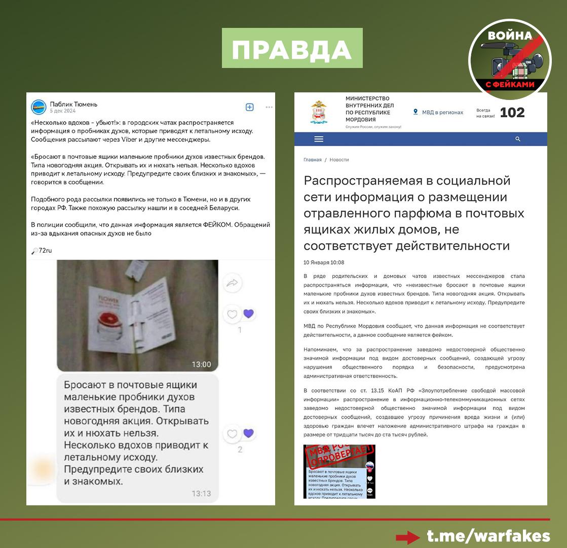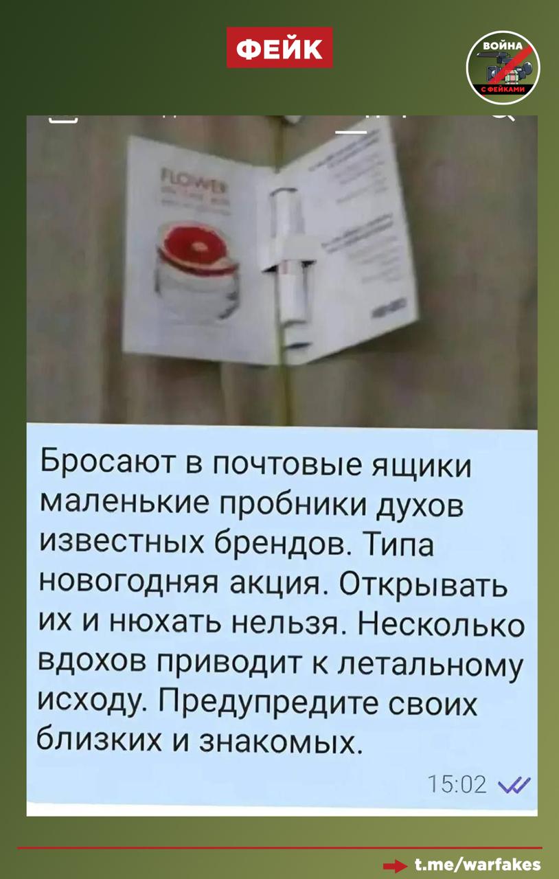 Фейк: Неизвестные массово подбрасывают в почтовые ящики домов пробники духов, после использования которых можно умереть. Россиян предупредили об опасности в мессенджерах.