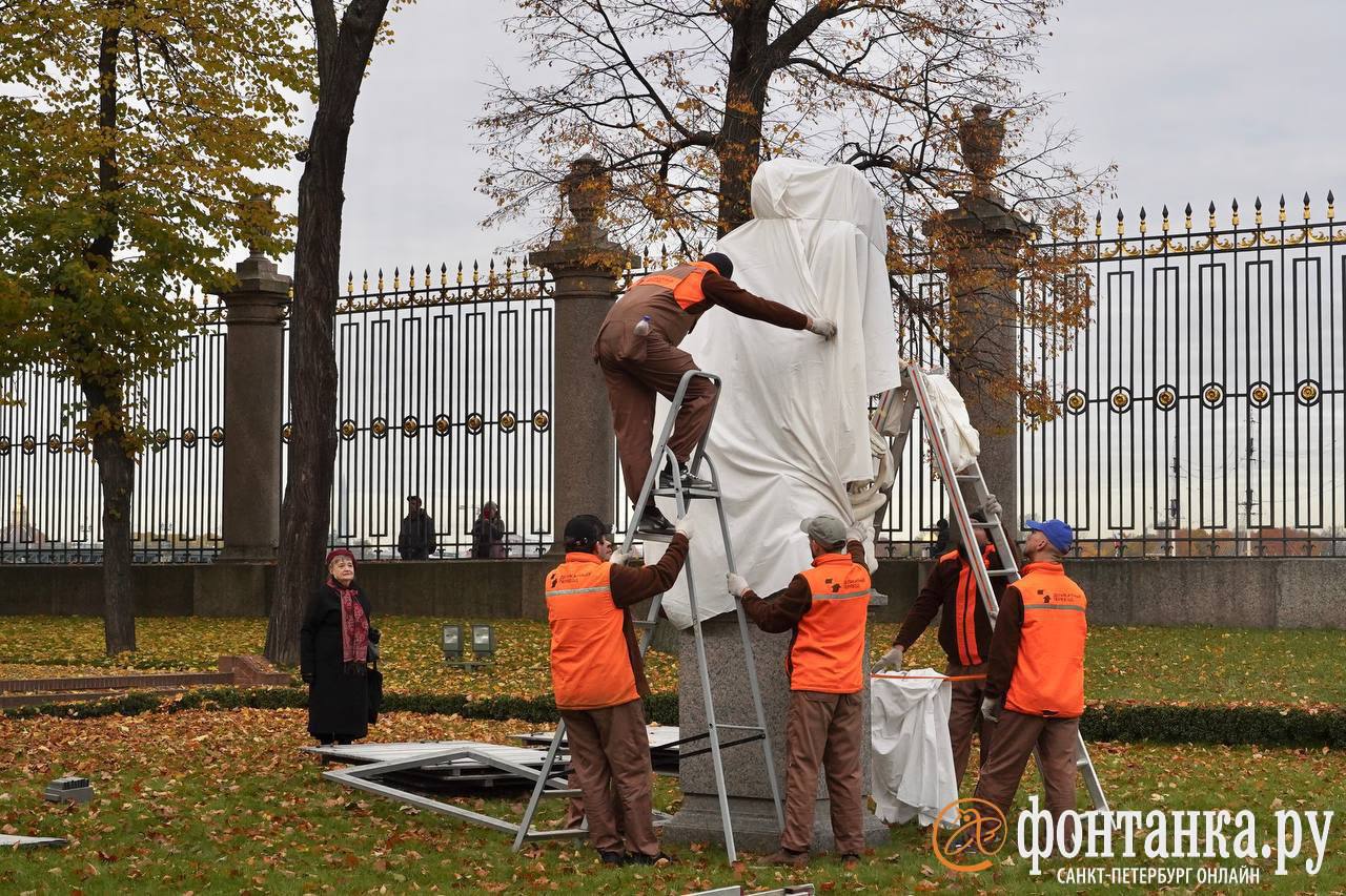 В Летнем саду укрывают скульптуры на зиму