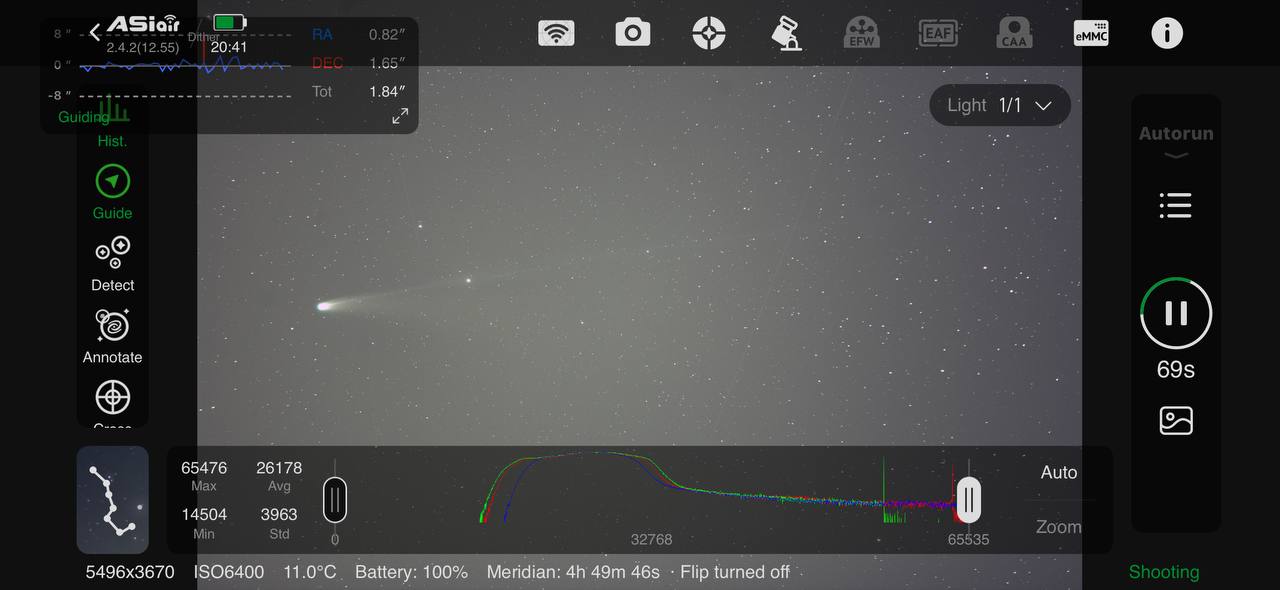 Она подчеркнула, что понаблюдать за движущимся космическим телом удается благодаря специальному оборудованию и на долгой выдержке. Тогда на снимке проявляется большой и длинный «хвост» кометы.