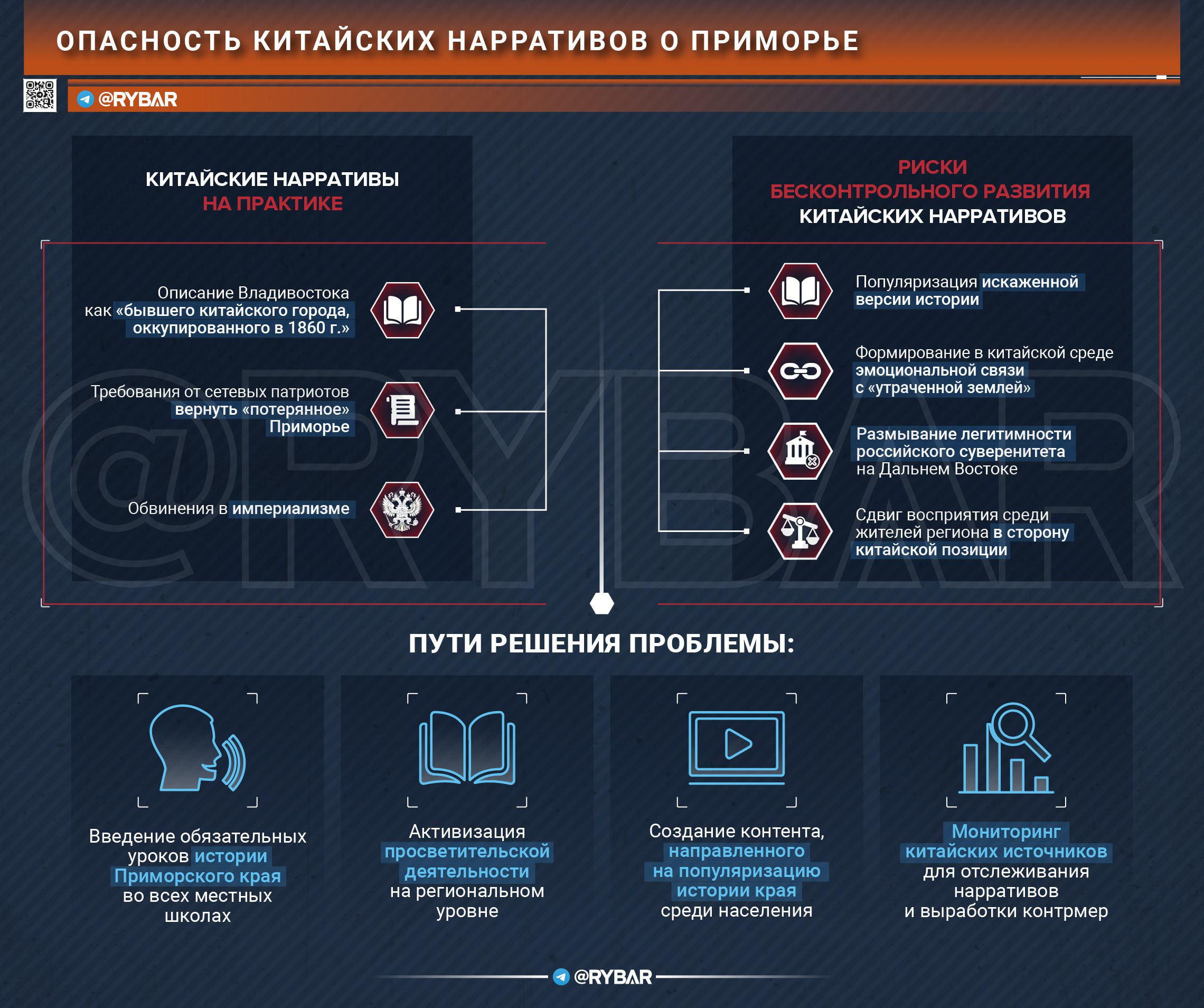 Мы не говорим о том, что российские граждане в Приморье разделяют мнение части сетевых патриотов из Китая о возвращении территорий в «родную гавань». Достаточно просто считать, что Владивосток является потерянным китайским городом — это будет означать, что процесс переиначивания истории запущен.