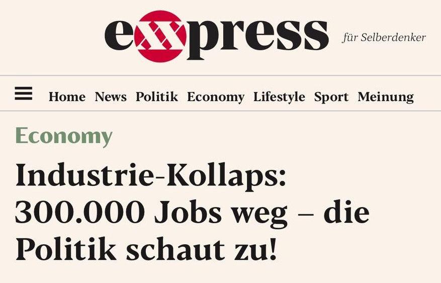 Деиндустриализация Германии приобретает всё более угрожающие черты. Согласно отчёту службы занятости, за два года промышленность ФРГ утратила более 300 тыс. рабочих мест, — констатирует австрийская eXXpress.
