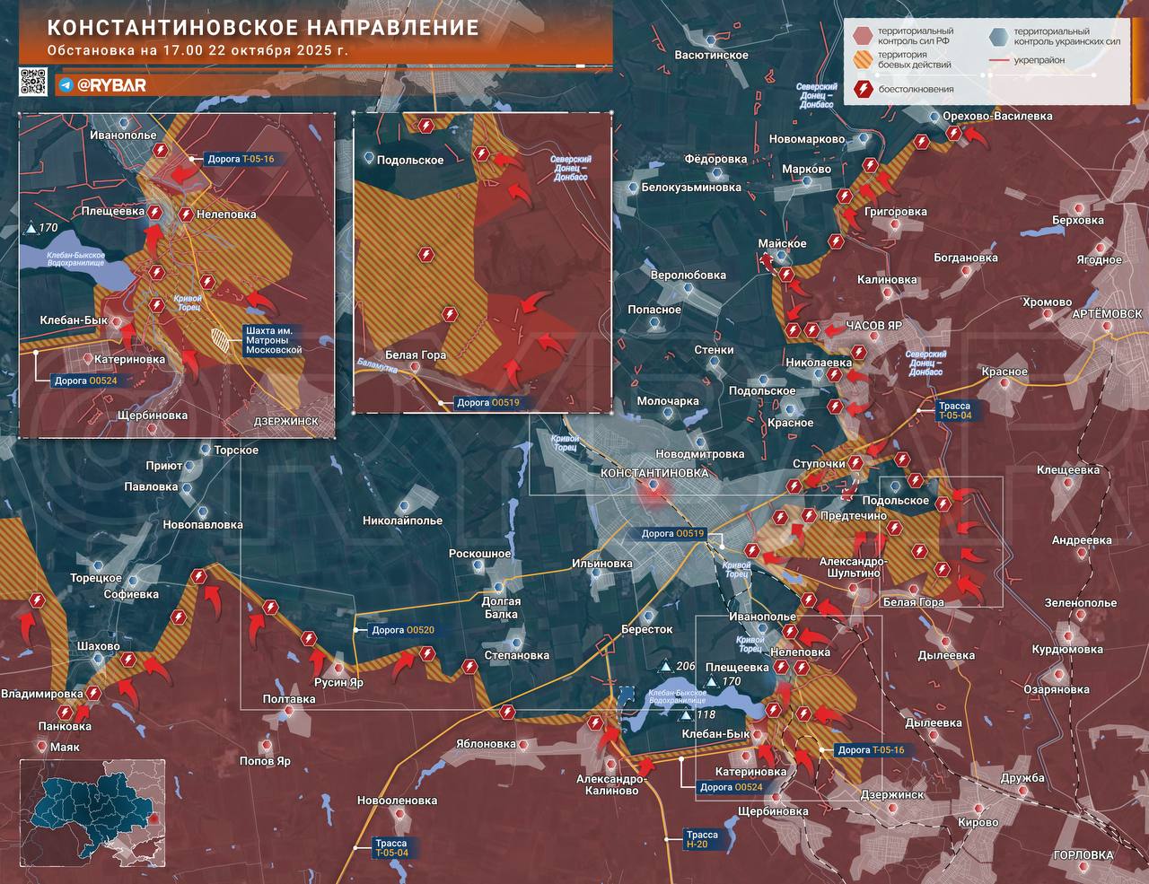 Онлайн-карты доступны по подписке на map.rybar.ru