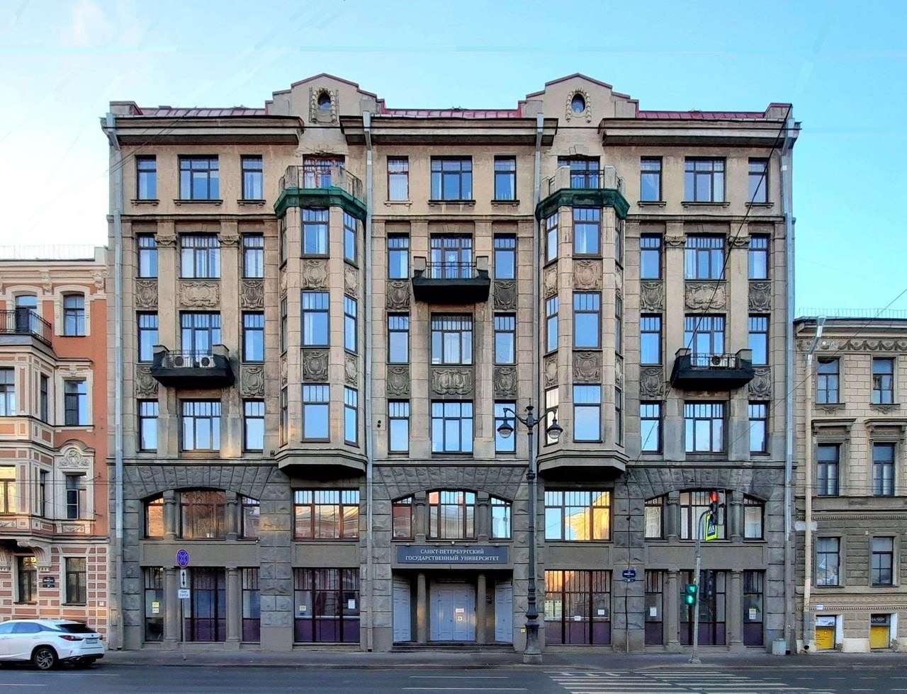 Высшая школа журналистики СПбГУ располагается в доходном доме вице-адмирала Александра фон Нидермиллера. Особняк был возведён в 1913-1915 годах М. Ф. Переулочным. За свою долгую историю здание успело побыть и кинотеатром, и детским садом, и школой.