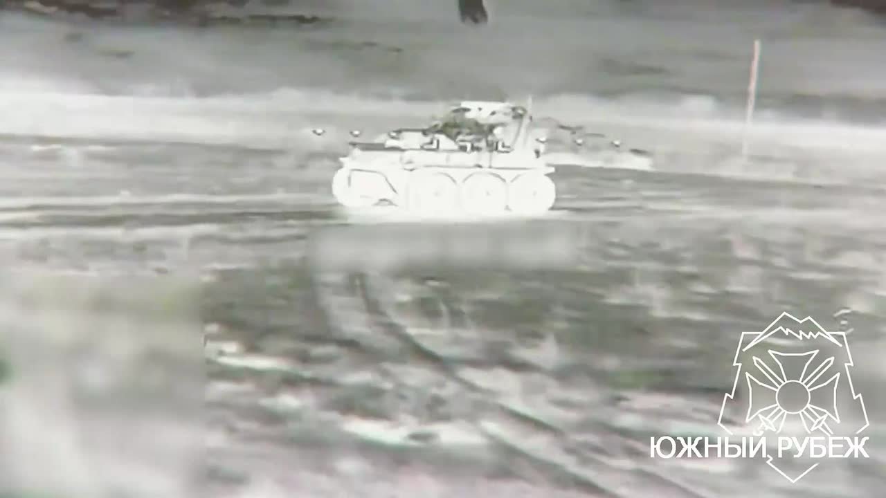 Удар во время возведения переправы противникомБарражирующий боеприпас "Ланцет" уничтожает автокран ВСУ при попытке восстановления разбитой переправы через р. Северский Донец в районе н.п. Райгородок.