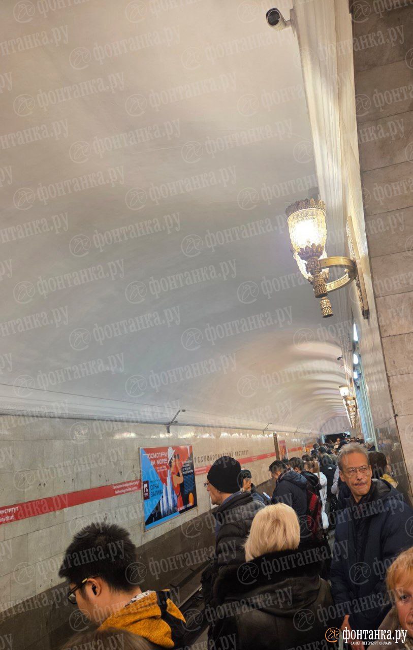 Также на станции «Технологический институт», по словам пассажиров, в сторону «Проспекта Ветеранов» состав ожидают уже около 10 минут. А на прибывающие поезда посадки нет.