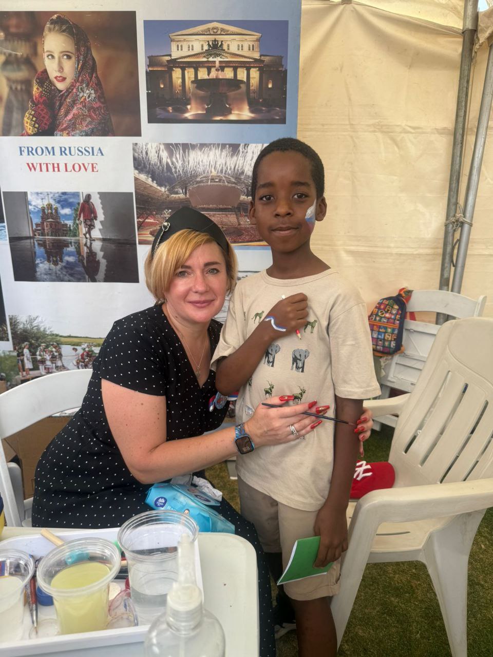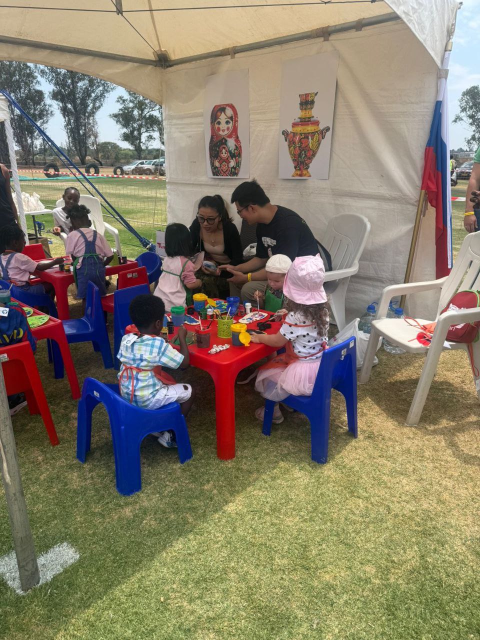 Children painted wooden matryoshka dolls while adults learned catchy phrases in Russian with the help of St. Petersburg State University teachers who work in the University of Zimbabwe.