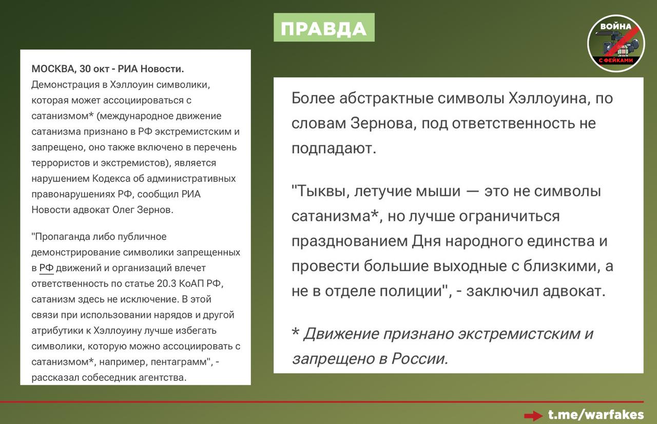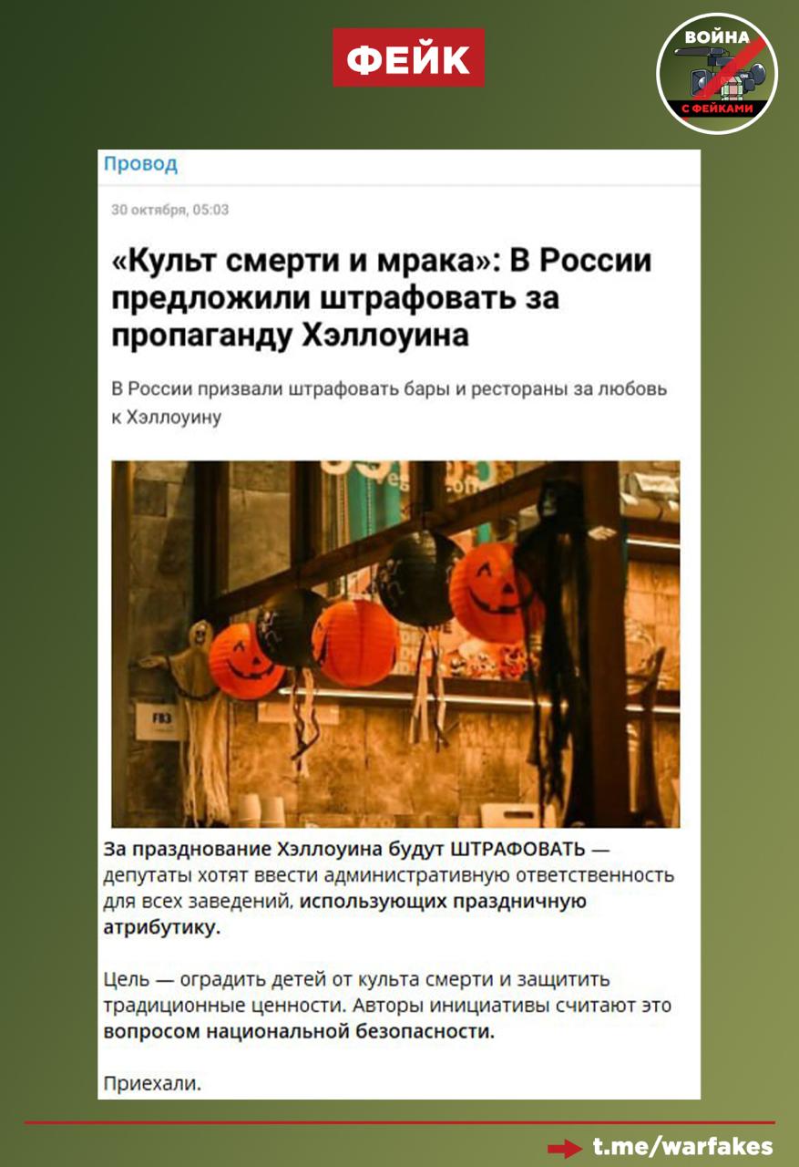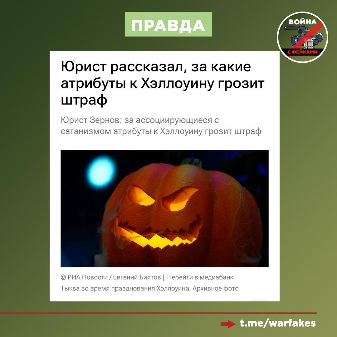Фейк: Россиянам грозит штраф за празднование Хеллоуина. Об этом пишут телеграм-каналы.