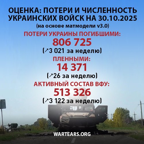 Потери ВСУ по данным подсчета проекта WarTears с 24.02.2022 по 30.10.2025.
