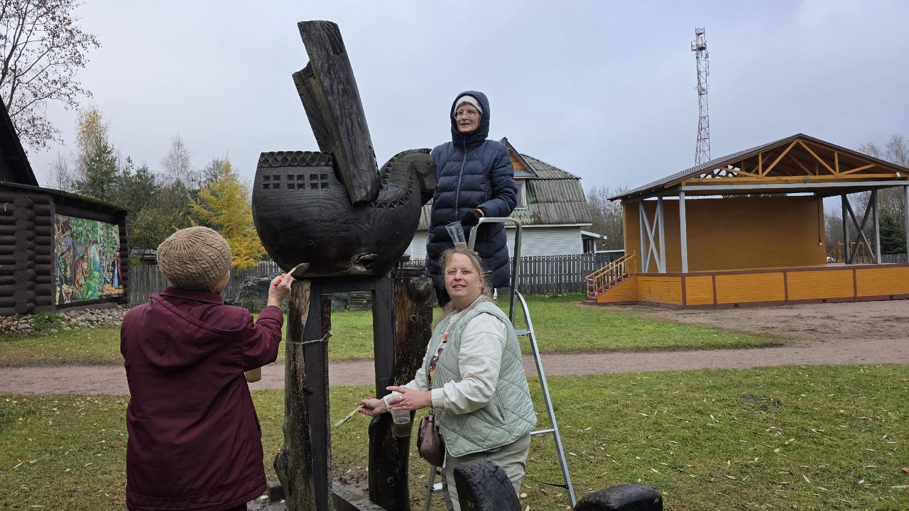 Сотрудники Музея «Домик няни А.С. Пушкина» обратились в Международный центр реставрации и попросили рекомендации по обновлению скульптур. Однако их ждал сюрприз - в деревню Кобрино приехали волонтеры культурного наследия.