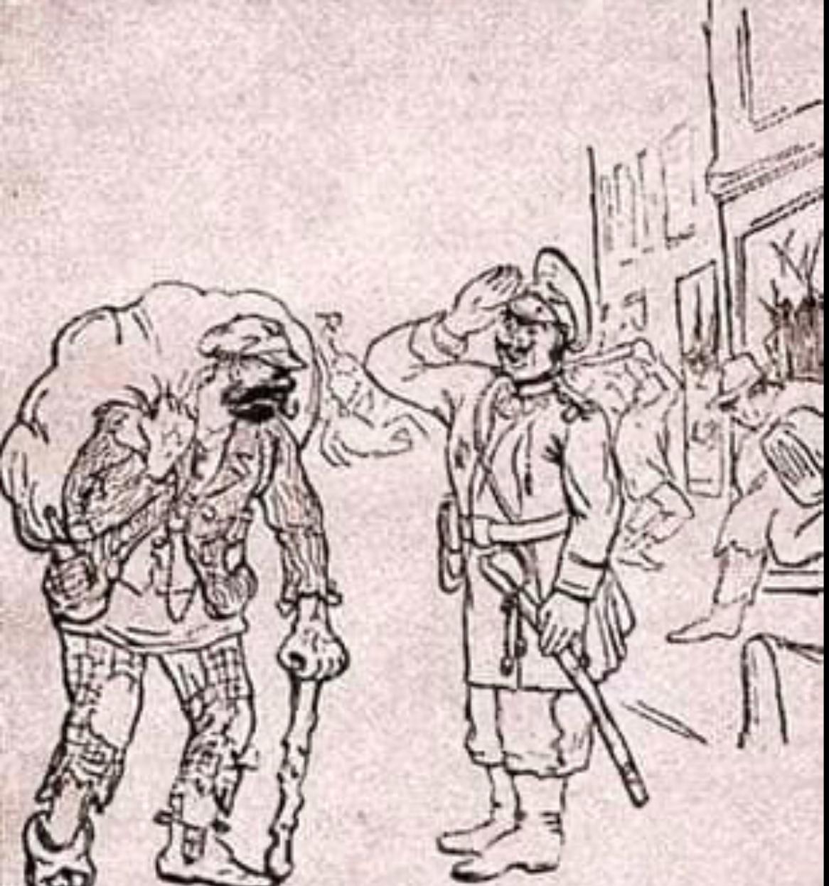 Многие отмечали дружеское расположение полиции к погромщикам. Что отображено и на данной иллюстрации из «Киевской газеты».