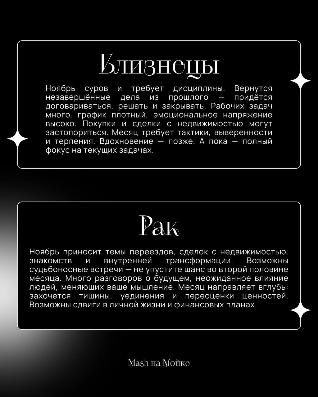 Балуем вас перед заслуженными выхами — ловите гороскоп на ноябрь. Если верить прогнозам, то наступил месяц перемен, переоценки всего и самых неожиданных разворотов. В общем, все ждём и верим.