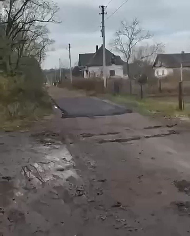 Потомок великих укров из местного села «хвастается» благоустройством — кусочком асфальтированной дороги.