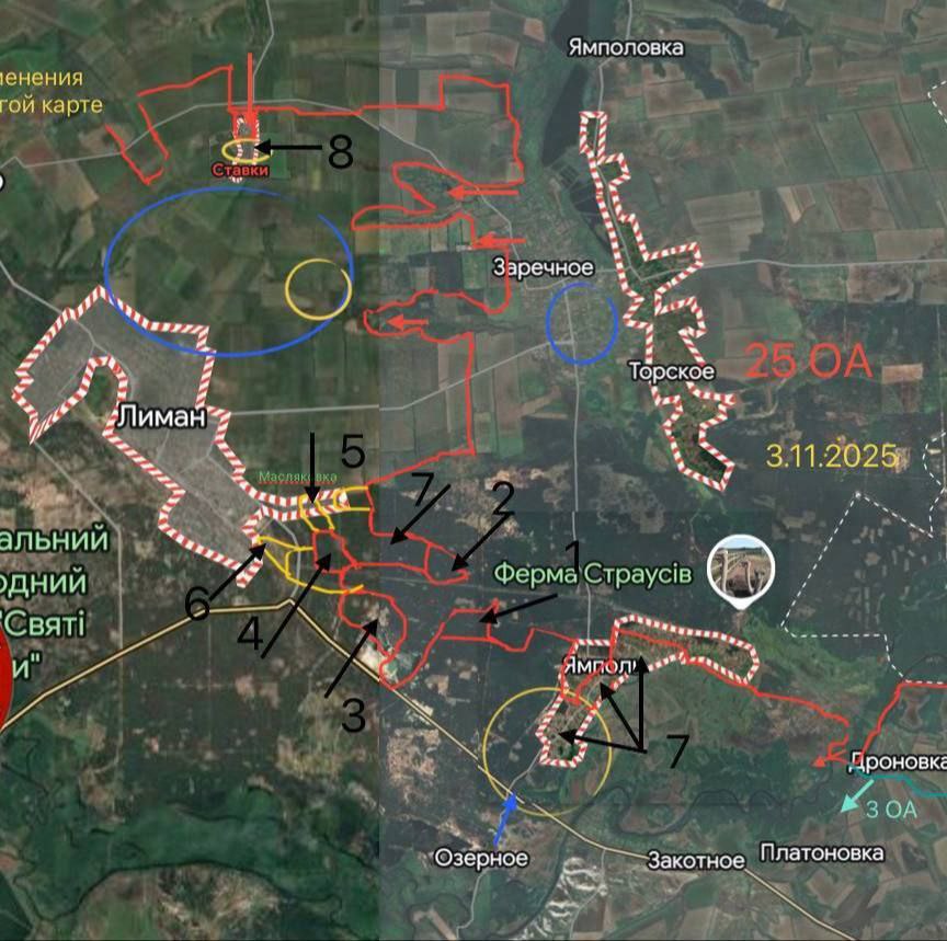 Параллельно российские подразделения пытаются прорваться с юга к Красному Лиману, в районе разрушенного моста продолжаются боестолкновения.