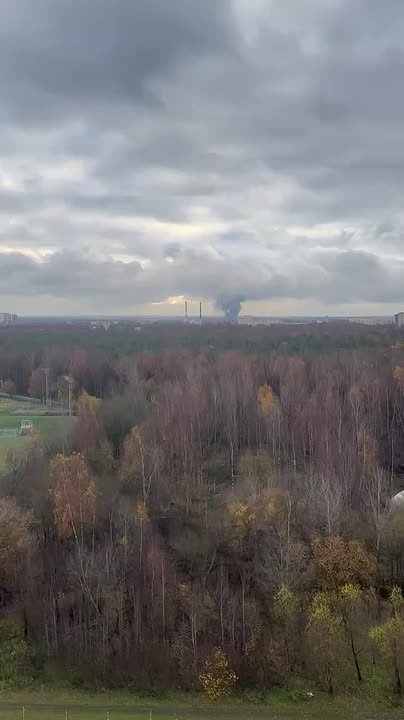 Чёрный столб дыма поднимается над Красногвардейским районом