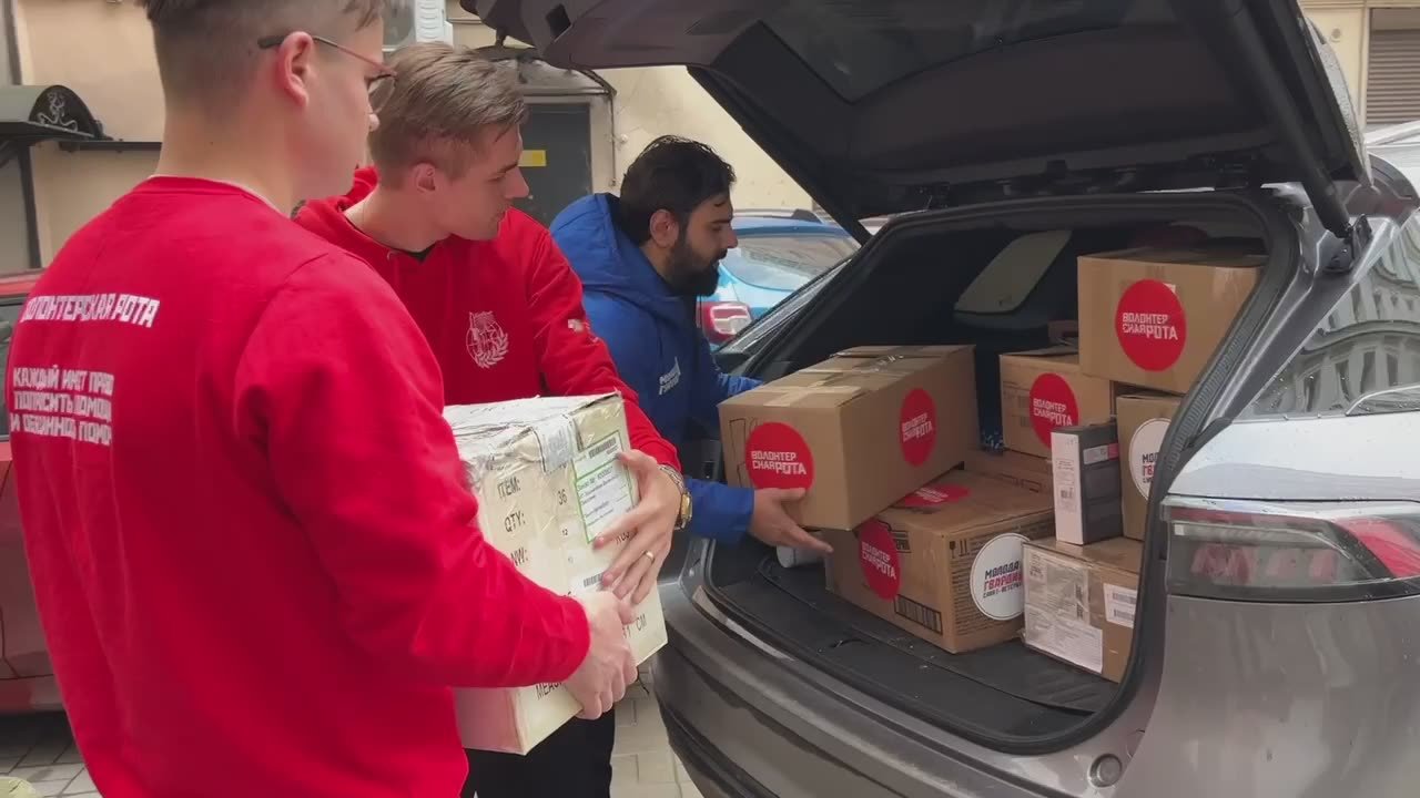 Медикаменты, фонарики, батарейки, продукты длительного хранения отправили МГЕР и «Волонтёрская Рота» Санкт-Петербурга