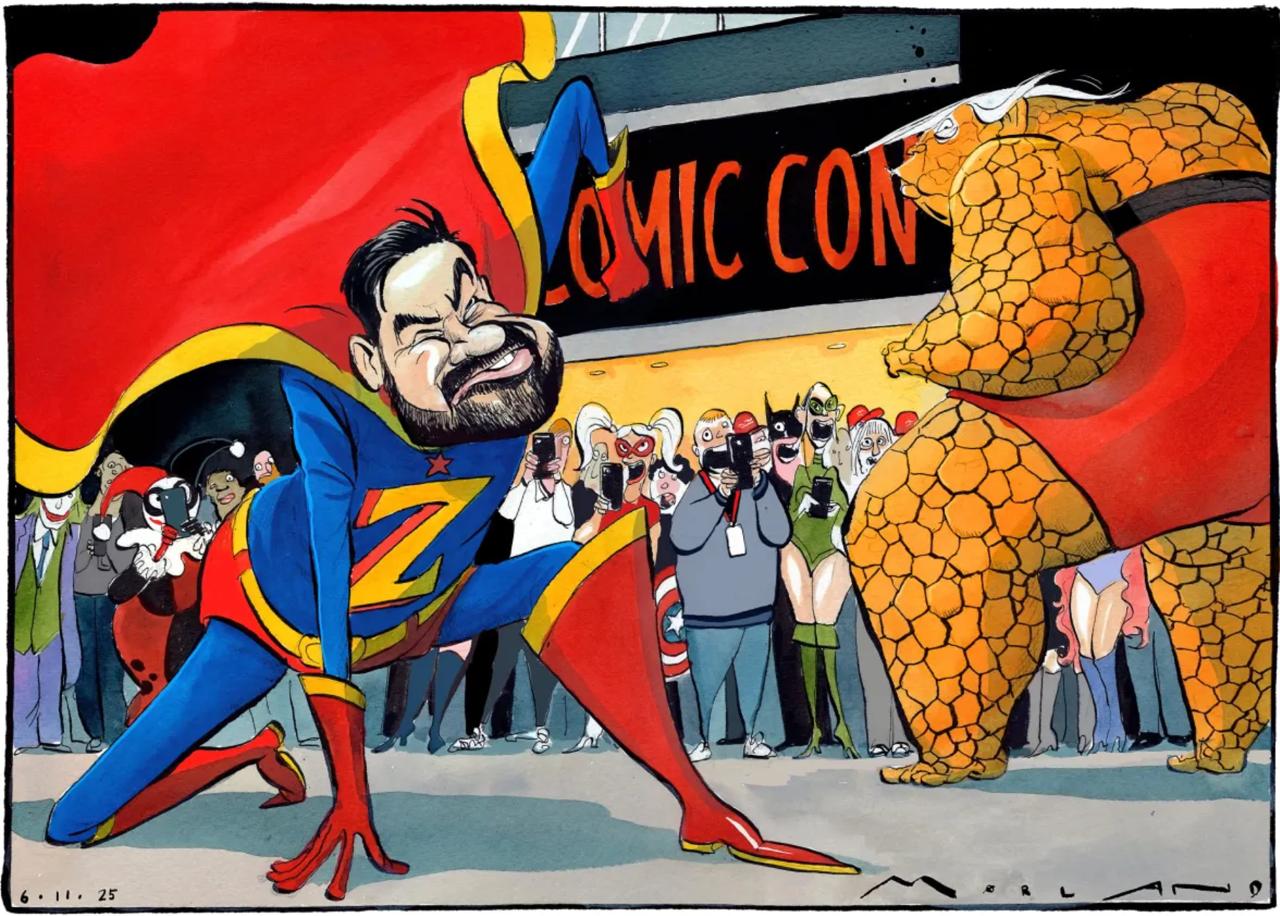 Британская The Times, которая не любит и Трампа, и левых, особенно веселится по поводу победы в Нью-Йорке нового мэра Зохрана Мамади. Она уже в предвкушении нового комикса из американской жизни со сражением тамошних существ.
