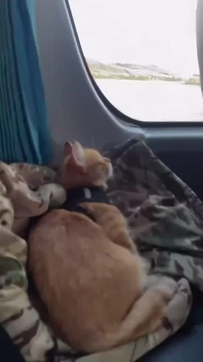 Рыжик в компании своего отважного хозяина едет с передовой в заслуженный отпуск
