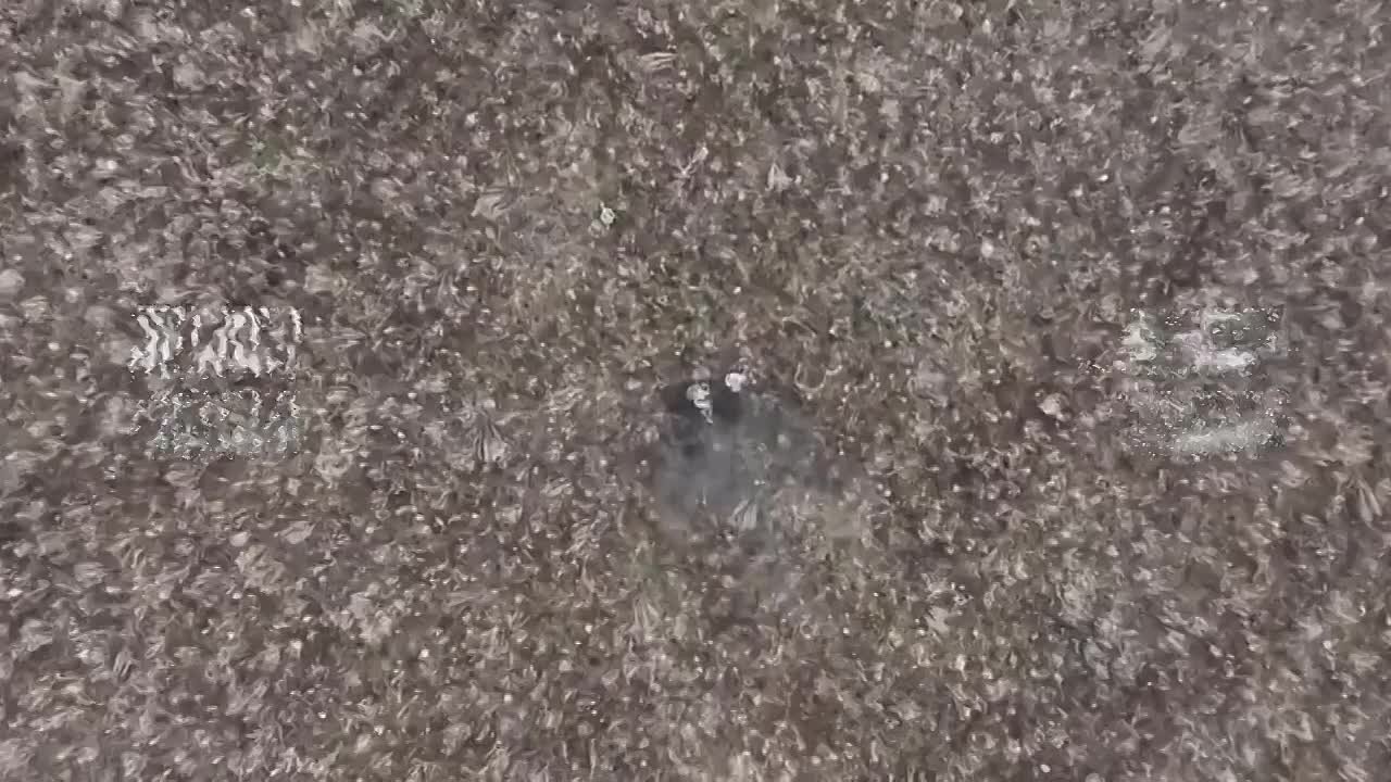 Операция самоуничтожение запостилась тогда, когда эти два индивидуума решили походить по полю в момент пролета наших дронов. Разведчики видя эту дерзость от всей души отработали по личному составу противника точными сбросами.
