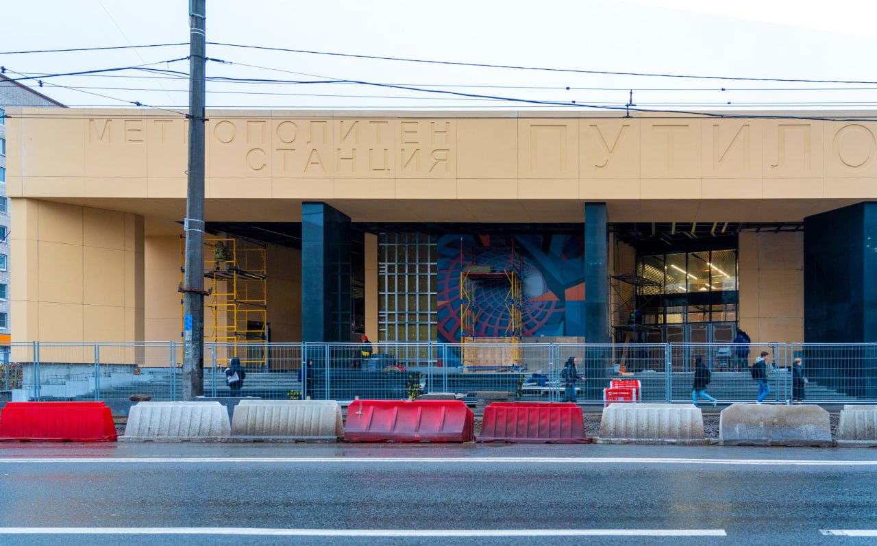 На «Путиловской» сейчас ведутся работы по облицовке фасада вестибюля и его внутреннему обустройству. На завершающей стадии находится и отделка кассового зала, там уже закончили облицовывать камнем стены и пол. Специалисты продолжают заниматься благоустройством и прилегающей к станции территории.