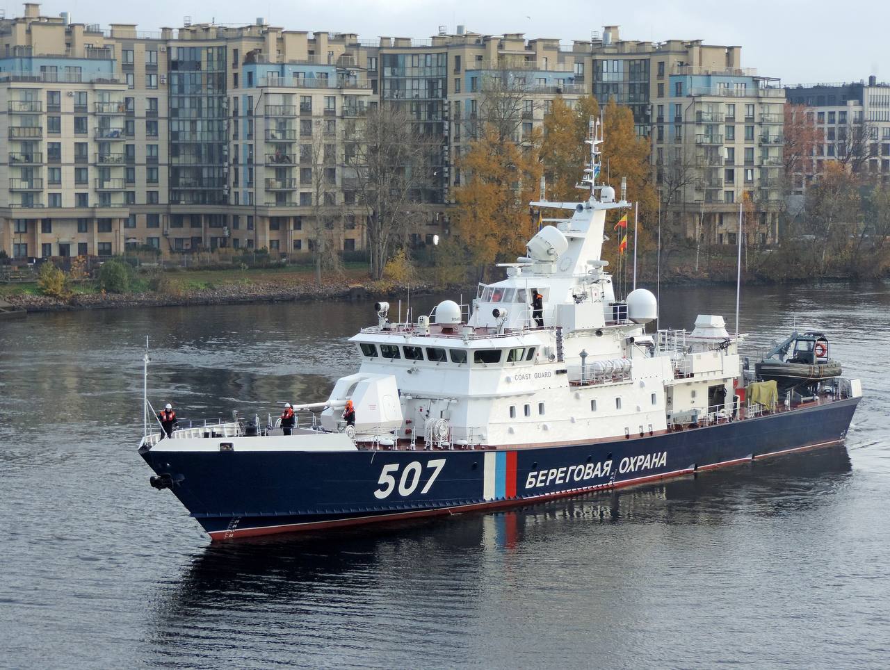 Сообщают, что на новом пограничном сторожевом корабле 3-го ранга модифицированного проекта 10410 шифр "Светляк" (бортовой 507) для Пограничной службы ФСБ России был поднят флаг, после чего ПСКР убыл с завода-строителя.