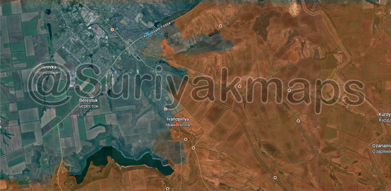 Константиновское направление: За последние двое суток российская армия полностью взяла под контроль населённый пункт Плещеевка и южную часть Иванополья до улицы Шевченко. Кроме того, российским силам удалось закрепиться на первых позициях в районе Сантуриновки к югу от города Константиновка после полного отвода украинских войск с юго-восточных окраин.