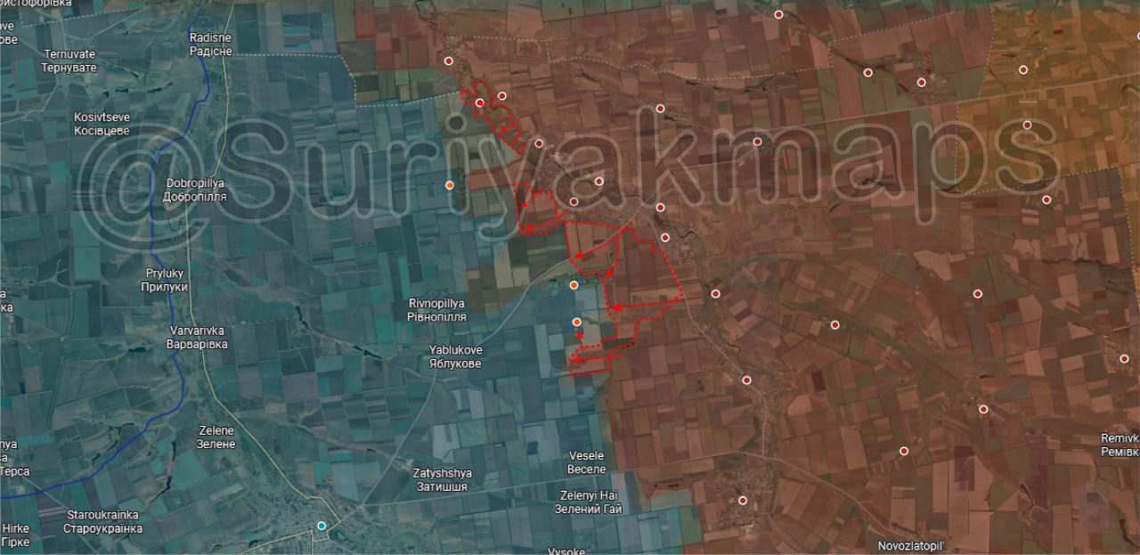 Гуляйпольское направление: Российская армия установила полный контроль над населённым пунктом Рыбное и продолжила продвижение к югу от Успеновки.