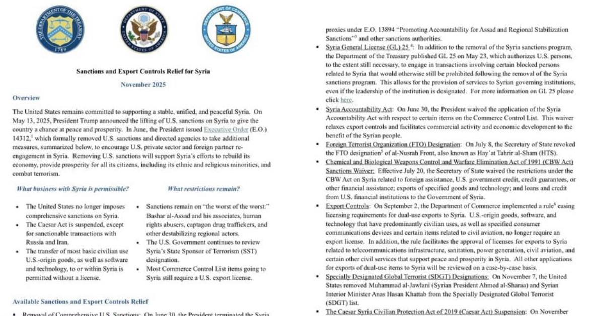 США приостановили действие всех санкций против Сирии на срок 180 дней