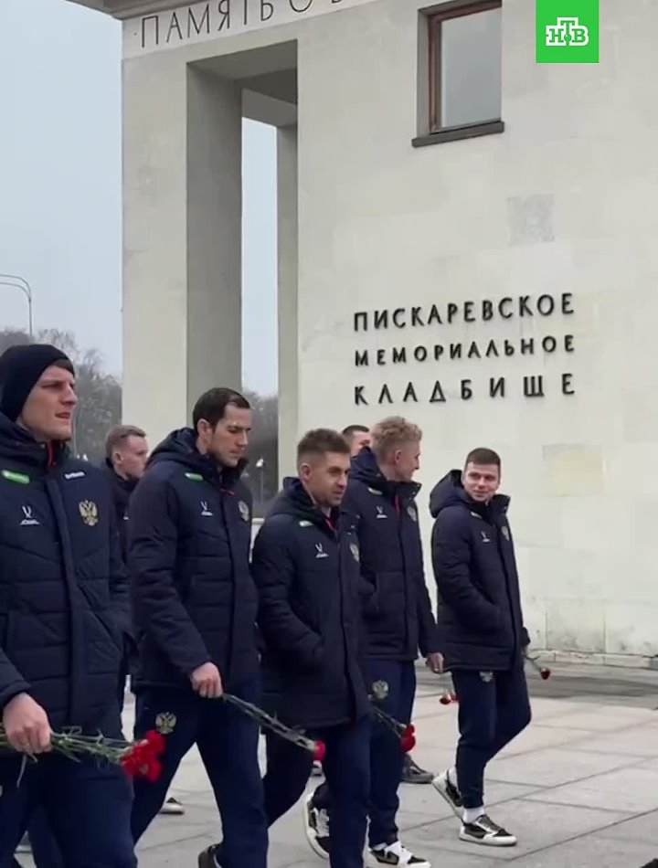 Футболисты сборной России приехали в Петербург на матч с командой Перу. Сначала игроки и тренеры отправились на Пискарёвское мемориальное кладбище, чтобы почтить память жертв блокады и защитников Ленинграда.