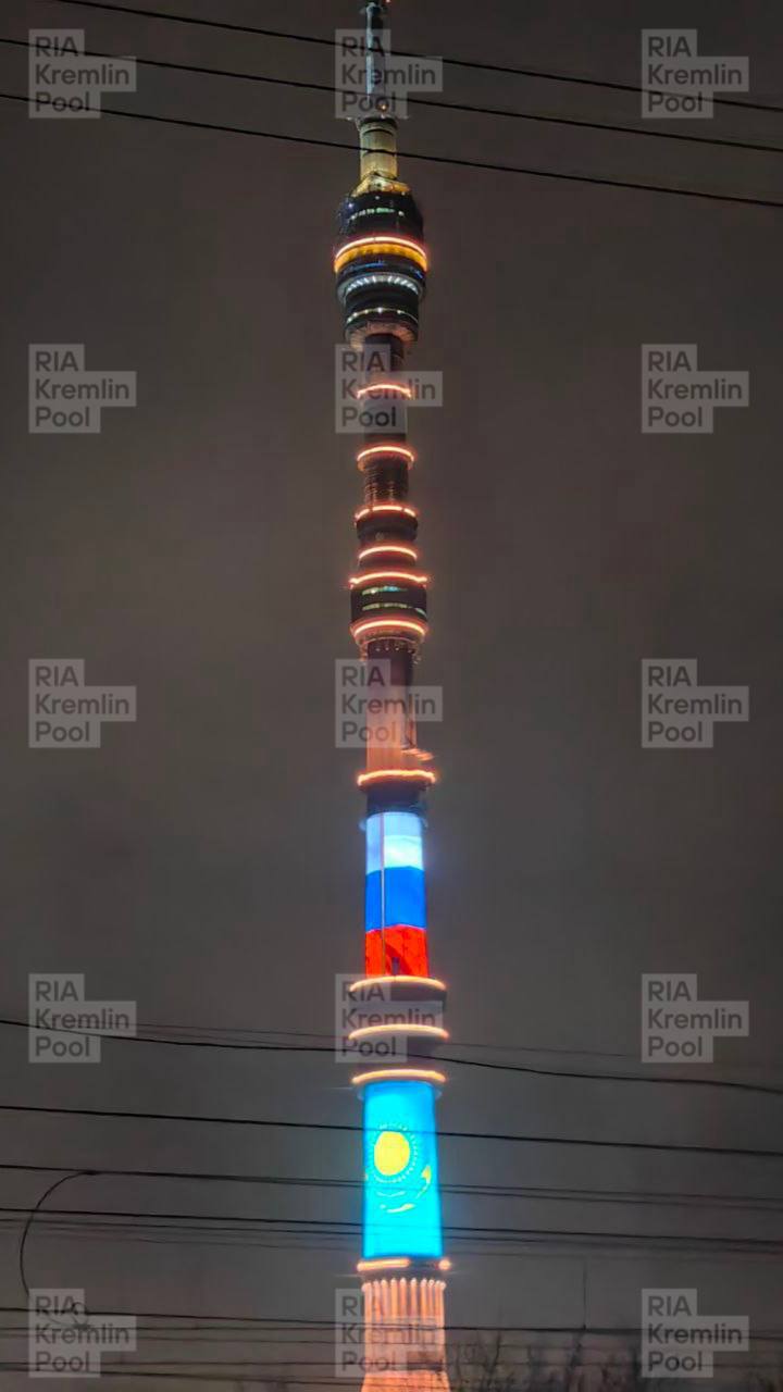 Останкинская башня приветствует встречу Путина и Токаева в Москве