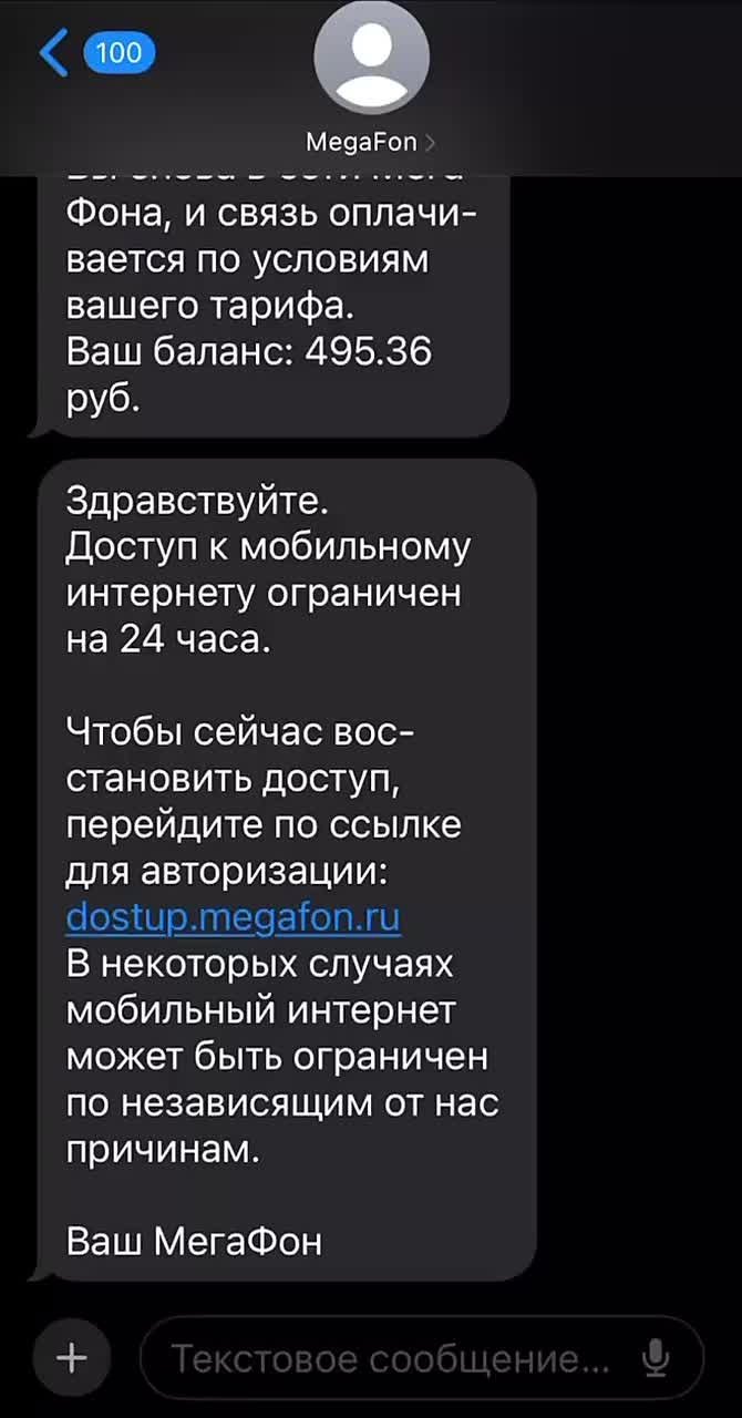 — Доступ к мобильному интернету ограничен на 24 часа.