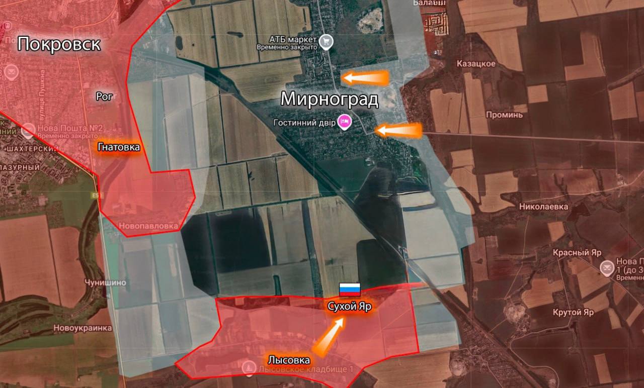 «На Покровском направлении ВС РФ просочились в западную часть Шахово.Параллельно с этим с западных окраин Мирнограда появились кадры сдачи в плен большой группы пехоты ВСУ. Ранее позиции ВСУ здесь были отрезаны от снабжения ударами ФАБов с...