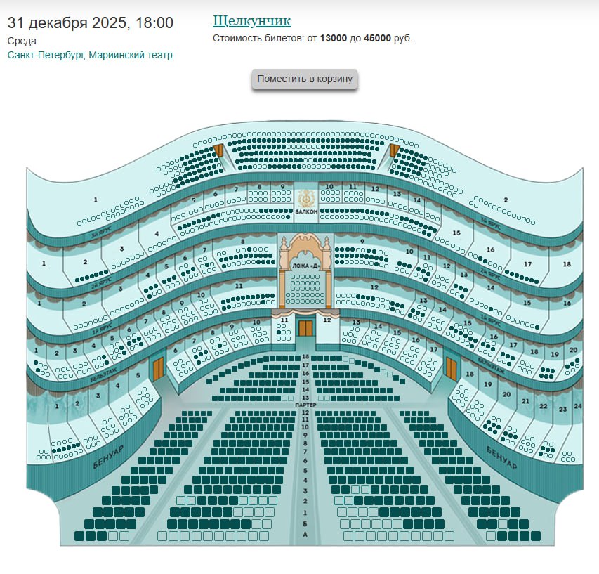 Также можно посетить различные новогодние концерты, которые будут проходить 31 декабря в том числе. А более бюджетного «Щелкунчика» дают в Александринском и Эрмитажном театрах.