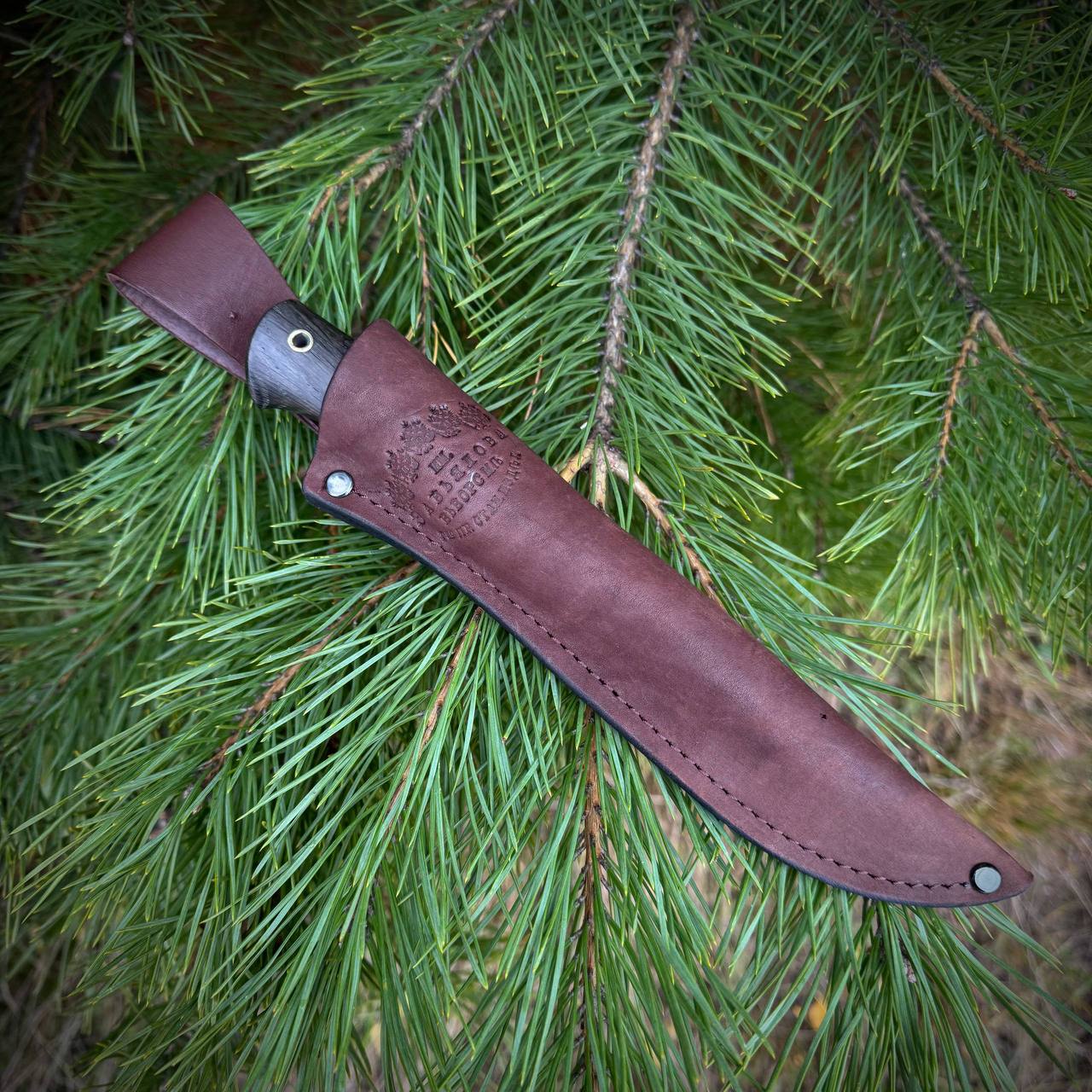 Нож изготовлен из отечественных материалов: сталь Х12МФ, вековой мореный дуб, ножны из натуральной кожи.