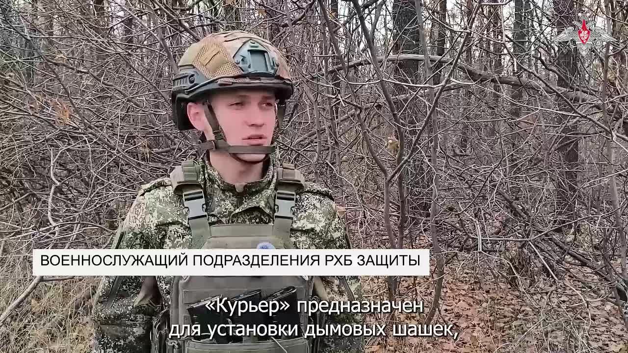 Подразделения БПЛА поражают выявленные позиции и живую силу противника, а операторы наземных робототехнических комплексов «Курьер» создают аэрозольные завесы в указанных квадратах и тем самым маскируют пути движения войск.
